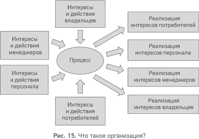 Как показано на рис. 15, процесс начинается с действий владельцев. Они генерируют идеи и предпринимательские замыслы, формируют уставный капитал и нанимают менеджеров. Нередко функции менеджеров выполняют сами владельцы организаций, в основном такая ситуация складывается в небольших компаниях.