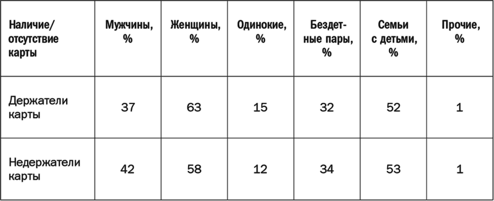 Таблица 5.7. Держатели карты в сравнении с недержателями