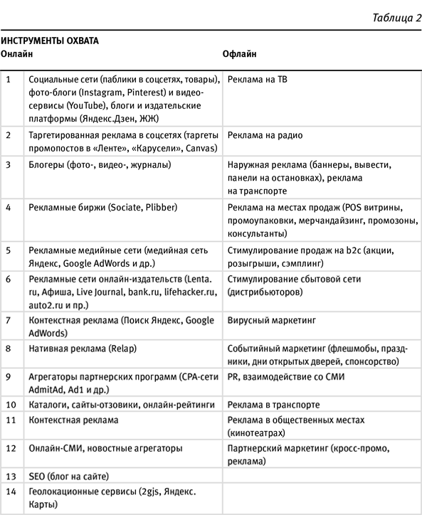 3. Опросить лояльных вашему заведению клиентов о том, кто является в их случае ЛВР (лицами, влияющими на решения) или каким источникам информации они доверяют. Так возможность охватить на этом этапе нужную нам аудиторию значительно возрастет (табл. 2).