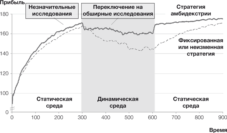 Рисунок 7–3. Стратегии амбидекстрии легко адаптировать к изменениям бизнес-среды (моделирование)