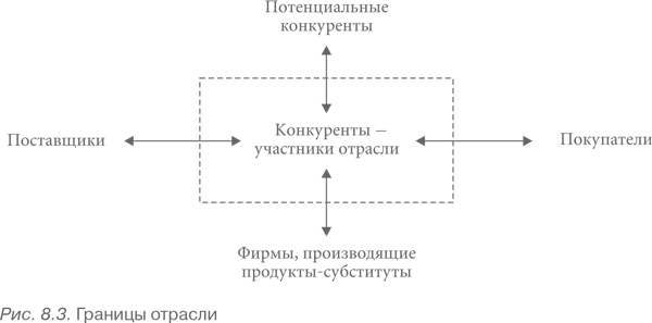 Структурные изменения в отрасли часто сопровождаются изменениями ее границ. Как показано в главе 1, границы отрасли представляют собой оценочное суждение, которое условно изображено пунктирной линией на рис. 8.3.