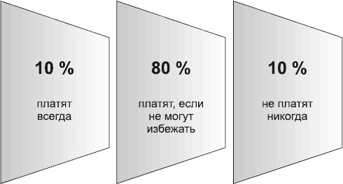Основная масса должников (80 %) платят, но если есть возможность избежать уплаты, не исключено, что они ею воспользуются. Такая возможность может появиться в результате удачного судебного процесса либо если вы просто забудете позвонить и напомнить о наступлении срока платежа. Поэтому от того, насколько хорошо у вас будет организована система работы с задолженностью, зависит, от скольких из этих 80 % должников вы будете получать деньги.