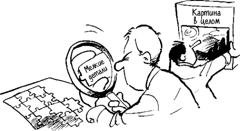Такой фильтр легко выявить по лексикону человека. Глобальный человек говорит о своем видении, мечтах, он часто использует выражение «в целом». Он терпеть не может вникать в детали и планировать все до мелочей. Чтобы повлиять на такого человека, полностью погрузитесь в его видение, а потом подумайте, как можно помочь ему достичь поставленной цели без нудной рутинной работы и вникания в мелочи и детали.