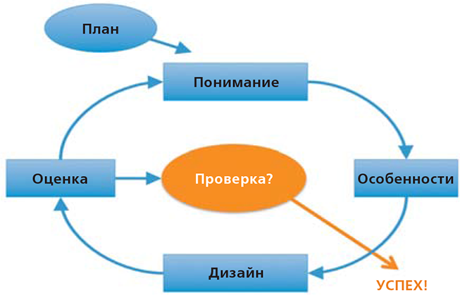 Наконец, процесс применим в любом типе проектов. Не так важно, что вы создаете: информационный сайт, классификацию, новое электронное устройство, онлайн-приложение, документацию или предмет мебели. В любом случае этот общий цикл (от понимания к оценке) будет вам полезен.