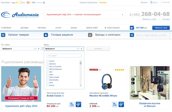 Инструментом быстрого перехода по брендам и категориям на сайте «Аудиомании» пользуется почти 10% посетителей.