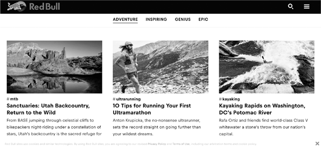 Один из признанных лидеров в этом жанре сторителлинга — Red Bull. У этой компании нет захватывающего происхождения, увлекательной корпоративной истории, социальной миссии или ценного продукта, и тем не менее она нашла креативный способ продвижения своего бренда.