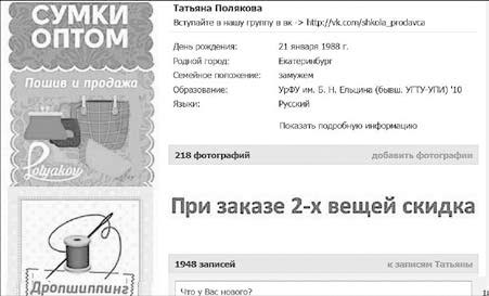 Вторая возможность – использование фотостатуса с суперпредложением на личной странице для донесения до клиента важной информации (рис. 24).