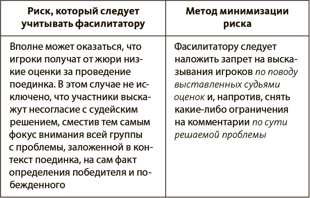 По окончании второго раунда для определения победителя в поединке судьи одновременно по команде ведущего поднимают над головой карточку с номером того игрока, которому они отдают победу. После вынесения решения у каждого из судей будет ровно одна минута для краткой аргументации своего решения. По окончании комментариев от судей группа приступает к выводам относительно главной цели проведения управленческого поединка: