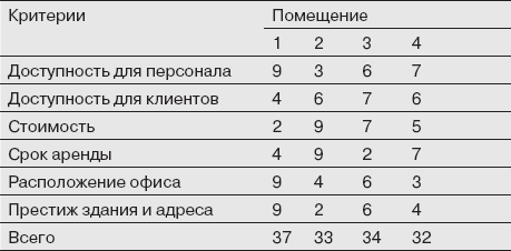 Либо генеральный директор – настоящий скареда, либо он заботится о деньгах акционеров. В любом случае критерий «цена» доминирует, поэтому помещение № 1 перемещается с первого места на последнее, а помещение № 2 становится бесспорным лидером, хотя критерии «расположение» и «доступ для персонала» достаточно важны.
