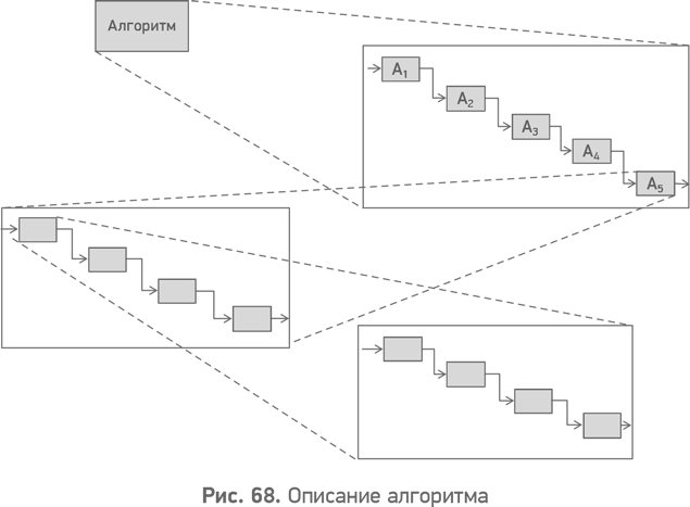 Что в алгоритме А5 можно подвергнуть изменениям, чтобы обеспечить рост объемов производства и продажи продукта, а также прибыли? Генри Форд говорил: «Вы не сможете улучшить процесс, если сначала не опишете его». Что это значит? Любой алгоритм – это набор операций, необходимых для достижения результата, и порядок их следования. Обеспечить рост объемов производства и продажи продукта, а также прибыли невозможно без внесения изменений в состав производственных операций и (или) порядок их следования. А для этого надо обладать полным описанием алгоритма. Описание операций и порядка их следования осуществляется с использованием инструментов операционного менеджмента (в формате IDEF, ARIS, SADT), как это показано на рис. 68.
