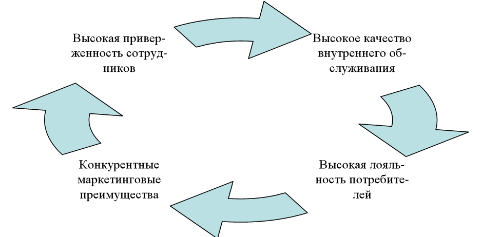 Высоколояльные сотрудники способствуют успеху компании. Они влияют на удержание потребителя, их профессионализм и манера исполнения служебных обязанностей определяют качество взаимодействия подразделений (так называемое качество предоставления внутренних услуг). Это, в свою очередь, непосредственно сказывается на качестве обслуживания клиентов. Приверженные своей компании работники способствуют развитию даже тех организаций, в которых удержанию потребителей уделяется недостаточно внимания. И наоборот, немотивированный персонал может загубить даже прекрасно отлаженное направление работы.