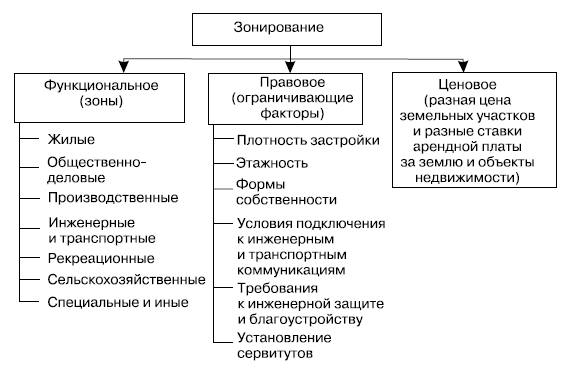 Политика зонирования территории города (функционального, правового, ценового) является важным фактором регулирования его развития, привлечения инвестиций, ограничения застройки отдельных участков, максимизации доходов от использования территории.