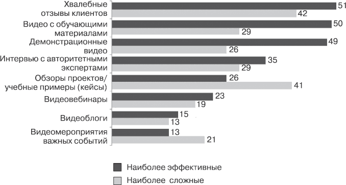 Рис. 11.1. Результаты опроса на тему «Какие типы видеоконтента при создании являются самыми эффективными и самыми сложными»