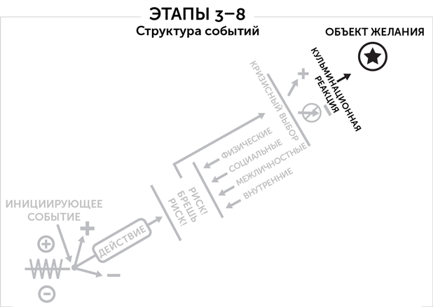 Восьмой этап — счастливый конец. Второе действие главного героя вызывает положительную реакцию со стороны объективного мира, позволяя ему обрести объект желания и восстановить равновесие в своей жизни. Это кульминационное событие не только удовлетворяет рациональное и эмоциональное любопытство зрителей, но и наглядно показывает, как они могут решить аналогичную проблему в своей реальной жизни — и, как и главный герой истории, получить то, в чем нуждаются и чего хотят.