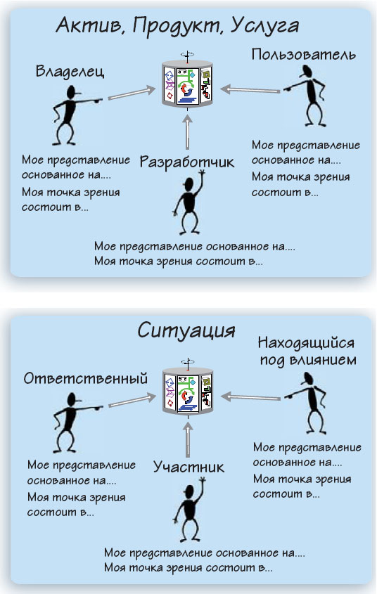 Физические системы, абстрактные системы, программные системы и даже некоторые системы человеческой деятельности могут рассматриваться одними лицами как активы, другими как изделия или продукция, третьими как услуги с добавленной стоимостью. В соответствии с этими представлениями и на основе понимания своих ролей и зон ответственности как отдельных лиц, групп, команд, организаций и предприятий стороны имеют точки зрения на определенную систему, отражающие их интересы (как собственника, приобретателя, разработчика, пользователя или специалиста по техническому обслуживанию). Такие системы планируются, разрабатываются и используются для достижения какой-то определенной цели.