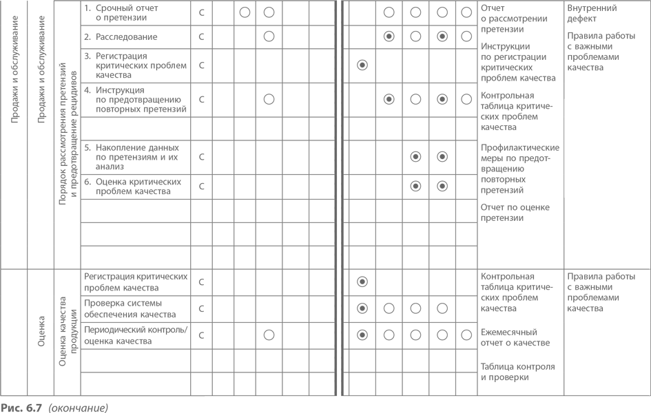Рис. 6.8 показывает взаимоотношения между различными подразделениями при работе с основными претензиями потребителя. Асано говорит, что после того, как эта система подготовлена, весьма существенно, чтобы каждый понял, как важно соблюдать данные методы и процедуры.