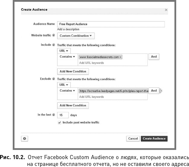 В моем примере я нацеливаюсь на всех, кто зашел на страницу с моим бесплатным отчетом, однако не увидел страницы с благодарностью – иными словами, тех, кто не поделился со мной своим электронным адресом (рис. 10.2).