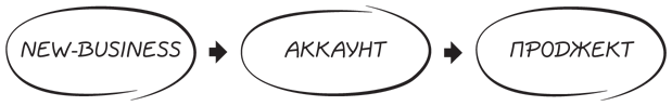 Затем new-business передает клиента аккаунту, который занимается разработкой тендерного предложения.