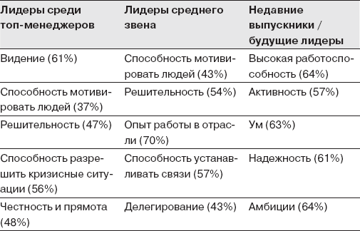 На данном этапе стоит спросить у менеджеров, чего они ожидают от коллег, начальства и членов команды. Результаты опроса менеджеров, распределенные в зависимости от критерия, представлены в таблице.
