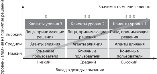 Рис. 5.1. Значение мнения клиентов в зависимости от их ценности, бизнес-роли и дохода