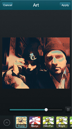 Если Diptic – это в первую очередь приложение для создание коллажей, то HelloCamera – самый настоящий фоторедактор. Он позволяет делать с изображением совершенно чудесные вещи. Здесь и оригинальные фильтры, и чумовые эффекты и, конечно, разнообразные рамки. Это действительно помогает разнообразить оформление своих снимков. К примеру, HelloCamera может наложить на картинку «мультяшный» эффект, что смотрится весьма любопытно. И таких вариантов здесь множество. Единственная небольшая ложка дегтя – приложение не бесплатно. Правда, ложка эта совсем мала – цена не кусается. На момент написания этих строк стоимость фоторедактора в AppStore – менее ста рублей. Для такого мощного помощника, полагаю, это недорого.