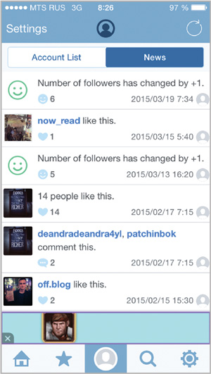 Любопытная программа. Она хоть и содержит множество разных функций, установил лично я ее ради одной-единственной. Fotogramme позволяет одновременно логиниться под несколькими аккаунтами. То есть, чтобы просмотреть ленту и комментарии, не нужно заходить, каждый раз заново вводя логин и пароль, а просто разом подключив несколько аккаунтов. Для наглядности приведу пример, где это может быть использовано. Предположим, вы развиваете тематическую страницу. Она у вас создана и постоянно пополняется новым контентом. При этом с нее вы, разумеется, не подписаны на конкурирующие страницы. Но при этом вы хотите знать, чем дышат коллеги, чтобы реагировать на тренды, пробовать «перехватить» рекламодателей, ну и просто, как говорят, держать нос по ветру. Вы устанавливаете Fotogramme и подключаете туда два аккаунта. Первый – ваш основной, над которым вы работаете. Второй – новый, созданный специально для подписки на интересующие источники. В итоге: в одном рабочем кабинете вы сразу можете следить за активностью по обоим направлениям. Удобно? Не то слово! Также такая функция может быть полезна, скажем, в том случае, когда вы развиваете сразу несколько разных страниц, на каждой из которых работает нанятый вами администратор. Вы все свои аккаунты запускаете через Fotogramme и можете оперативно следить за обновлениями и, в случае необходимости, немедленно вмешаться в рабочий процесс. Правда, добавление сразу нескольких аккаунтов стоит денег. Но «денег» – это, конечно, громко сказано: на момент написания книги стоимость добавления четырех страниц – всего несколько десятков рублей. В стоимость также входит и отключение показываемой приложением рекламы.