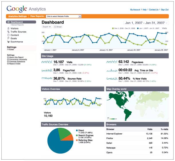 Рис. 7.14. Пример аналитического дашборда о посетителях сайта от Google Analytics