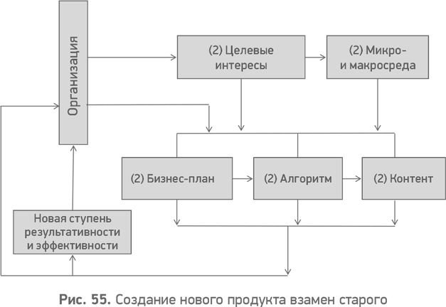 Новые и прежние представления об интересах потребителей могут иметь больше отличий, чем сходств (рис. 54). В таком случае организация будет вынуждена отказаться от производства и продажи продукта 1 и создать совершенно новый продукт 2 (рис. 55). Так в 2008 году на смену Toyota Land Cruiser 100 пришел Land Cruiser 200.