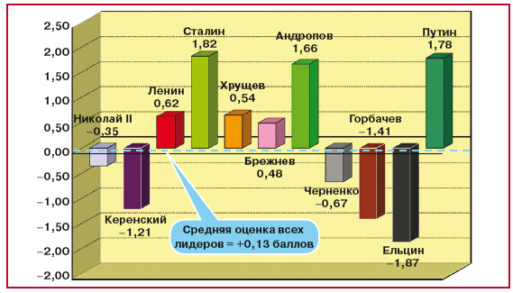 Во-первых, по мнению экспертов, из 11 лидеров, возглавлявших нашу страну в XX веке, пятеро, управляя государством, принесли вреда больше, чем пользы.