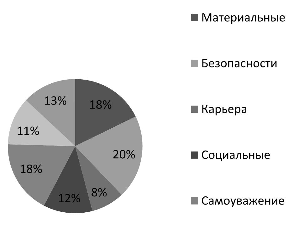 Наиболее важное значение для сотрудников имеет потребность в безопасности и защищенности. Чуть ниже уровень материальных потребностей и потребностей в самоуважении.