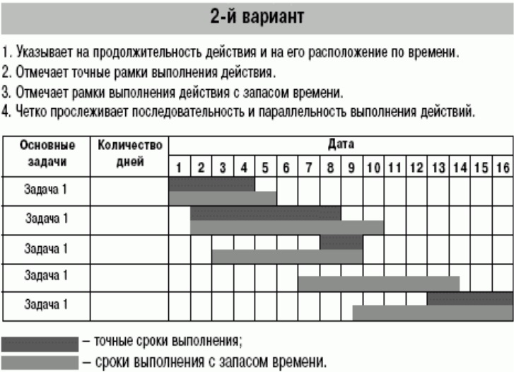 Диаграмма Гантта оформляется в виде таблицы, содержание ее можно варьировать и дополнять важными для составителя графами.