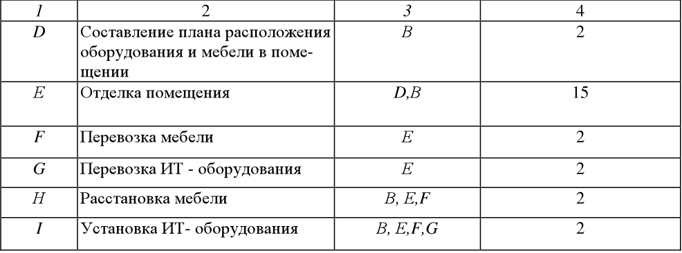 Таблица 2 Установленные соотношения «предшественник-последователь» для проекта " Переезд в новый офис "