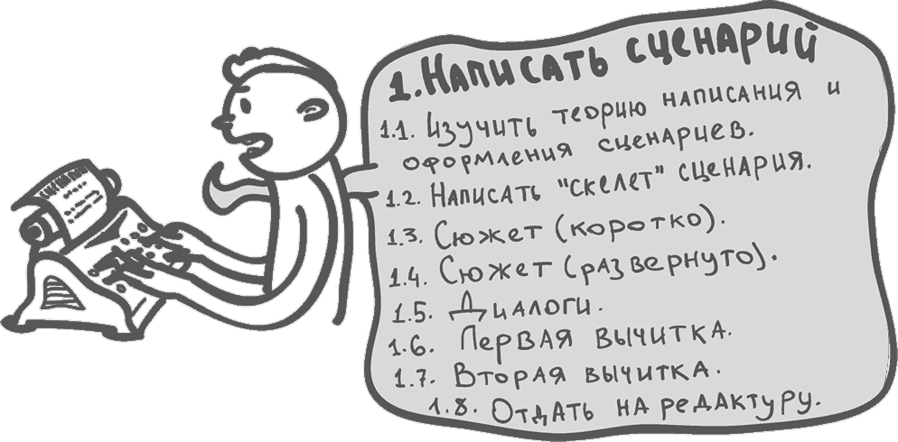 И так по всем этапам. Пробуйте расписать один из пунктов своего списка таким образом, чтобы получились конкретные задачи (как на примере выше).