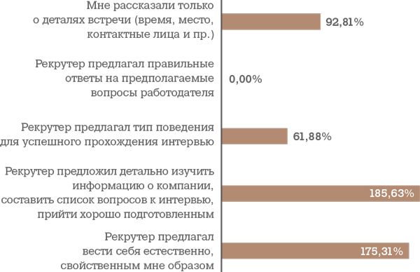 Выберите наиболее подходящее описание действий рекрутера при подготовке вас к интервью с работодателем (множественный выбор)