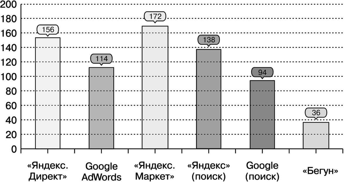 Пример 2. Компания «Системный интегратор», основной профиль работы которой – решения по автоматизации крупного и среднего бизнеса (нижняя граница стоимости – 10–15 тыс. долларов). На рис. 1.2 вы видите статистику обращений через сайт, поскольку телефон они не указывали по своим соображениям. Количество заявок приличное, притом что стоимость одного заказа уже окупает все годовые затраты на проведение SEO-мероприятий.