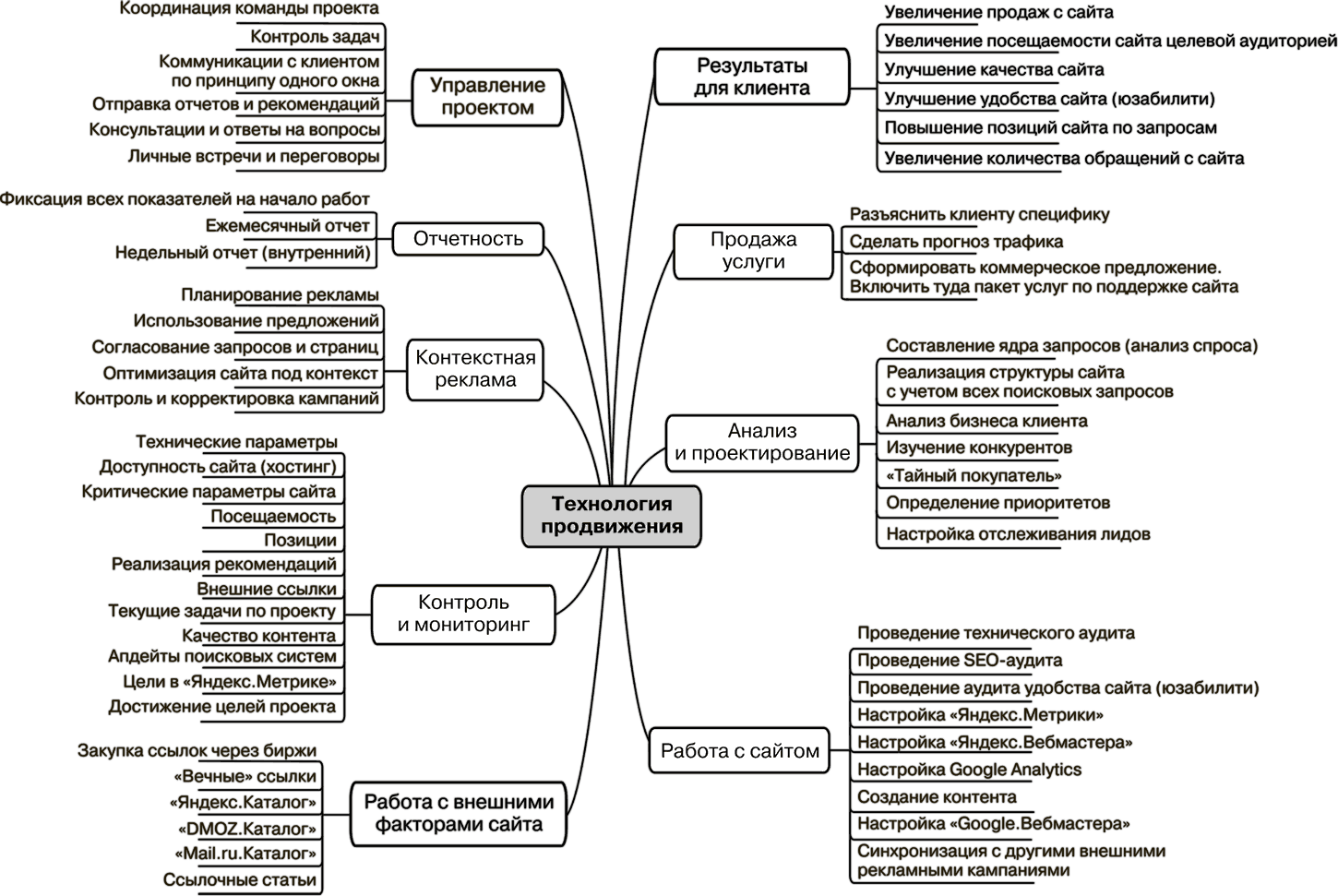 Рис. 1.8. Интеллект-карта, иллюстрирующая технологию проведения SEO