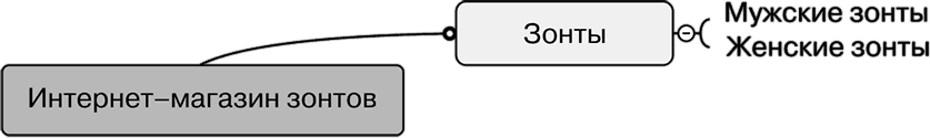 • Построение структуры сайта. Если у вас собрано маленькое ядро запросов, получается такая же убогая структура (рис. 1.9). Как следствие – низкие позиции, небольшой трафик и недовольные клиенты. Хороший сайт всегда имеет логичную развернутую структуру (рис. 1.10).