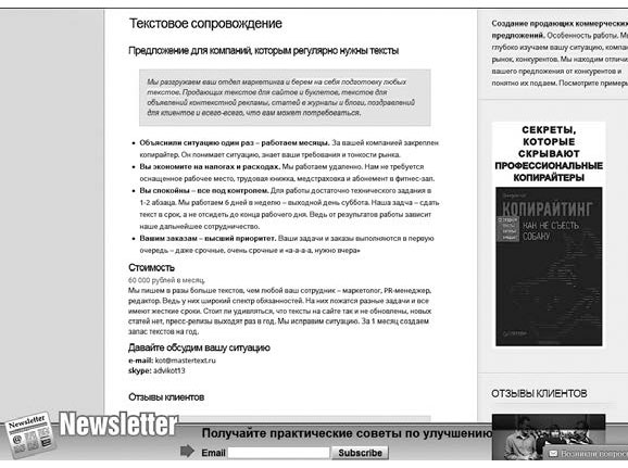 Рис. 1.11. Пример читабельного и продающего текста (сайт Дмитрия Кота)