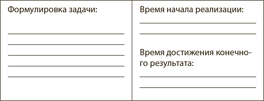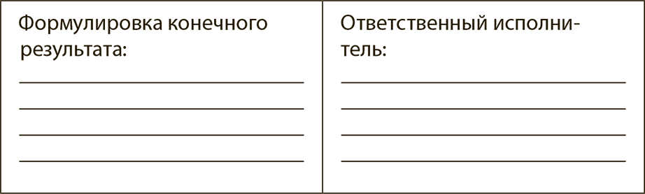 Идеи распределяются между командами участников (по 2–4 человека в каждой). Весьма желательно, чтобы в бизнес-планировании той или иной ключевой идеи участвовал ее непосредственный автор. Ведущий раздает каждой команде по 20 стикеров. Задача состоит в том, чтобы прописать на них конкретные мероприятия, необходимые для реализации идеи, и наклеить заполненные стикеры на соответствующий временной отрезок итоговой таблицы.