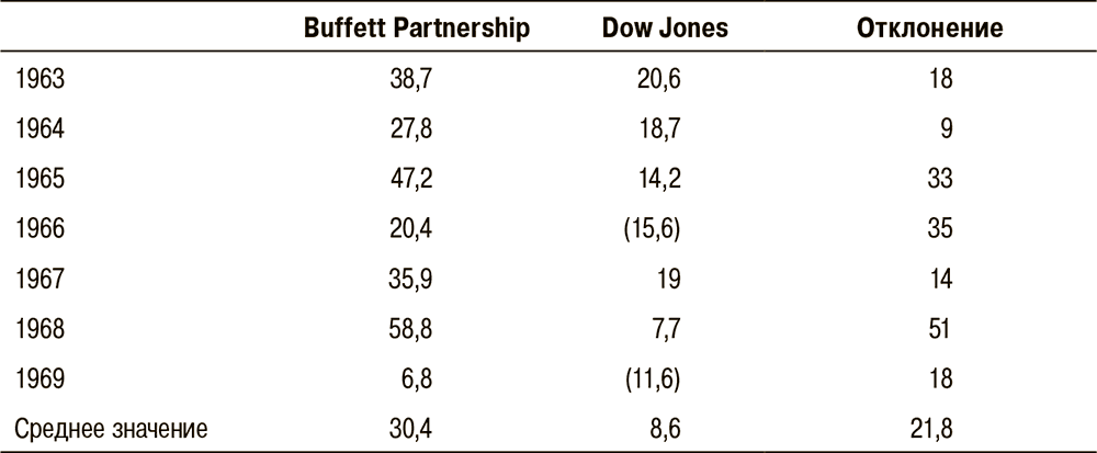 Динамика доходности Buffett Partnership и рынка в целом (в процентном выражении)