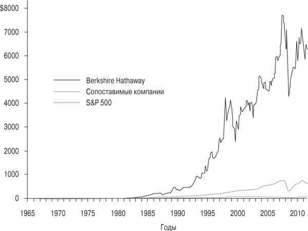 Рис. 8.1. Стоимость вложения $1 в Berkshire Hathaway. Источник: Center for Research in Security Prices (CRSP) и Compustat