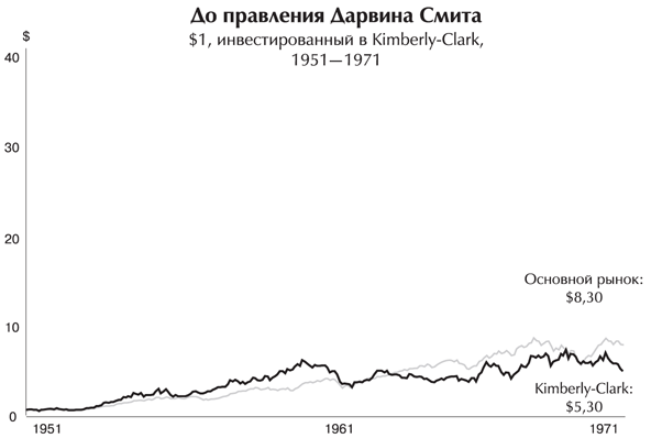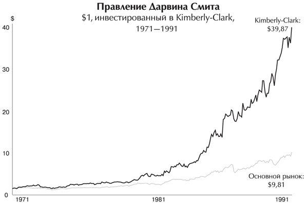 И какие двадцать лет! За это время Смит осуществил поразительные преобразования, превратив Kimberly-Clark в мирового лидера по производству потребительских товаров из бумаги. Под его руководством доходность по акциям Kimberly-Clark в 4,1 раза превысила средний показатель по рынку; компания обошла прямых конкурентов (Scott Paper и Procter & Gamble) и опередила такие почтенные компании, как Coca-Cola, Hewlett-Packard, 3M и General Electric.