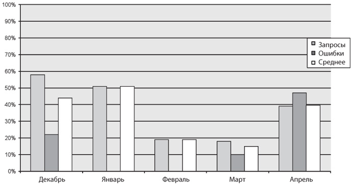 Хороший индикатор для бережливого производства, показывающий степень эффективности системы, – отношение времени выполнения ко времени контакта. В производстве время контакта – это время, которое сотрудник проводит непосредственно за работой. В области разработки ПО измерить этот показатель очень трудно. Однако в большинстве систем отслеживания можно выявить отношение времени, выделенного отдельному сотруднику, ко времени блокирования и нахождения в очереди. Таким образом, хотя сообщение об отношении времени выполнения к выделенному времени не дает точной картины эффективности системы, оно вполне может показывать, каков потенциал для улучшения (рис. 12.7).
