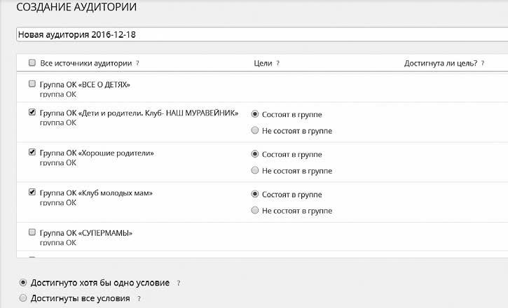 Как и во «ВКонтакте», в «Одноклассниках» есть классический ретаргетинг на посетителей вашего сайта, почтовую или телефонную базу, а также по id пользователей, которые вы можете собрать по критериям. Принципиальных отличий от других систем здесь нет. Все то же самое, только для сбора данных у вас на сайте должен стоять счетчик статистики Тop@mail.ru.