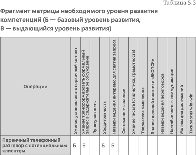 Шаг 3. Профилируем каждую операцию по компетенциям – определяем, какой уровень развития компетенций нужен, для того чтобы эффективно выполнять данную операцию.