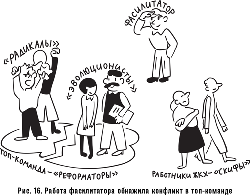 Образ амебы обнажил конфликт между прозападными реформаторами и основной частью компании, а в дискуссии, спровоцированной этой метафорой, проявился еще один конфликт, уже внутри команды реформаторов. Большинство реформаторов были сторонниками системного эволюционного пути: меняем все быстро, но шашкой не машем. А небольшая группа была настроена радикально: «шашку наголо» – и поменять большую часть персонала.