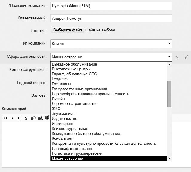 Рисунок 16. Справочник отраслей в Битрикс24.