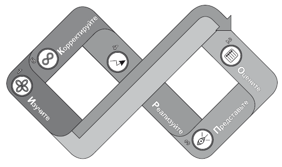А теперь представьте, как эти этапы связаны друг с другом и перетекают один в другой снова и снова. Их связь динамична. После некоторой практики ваше мышление станет гибким, и это обогатит вашу профессиональную жизнь и жизнь в целом.
