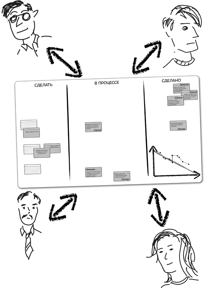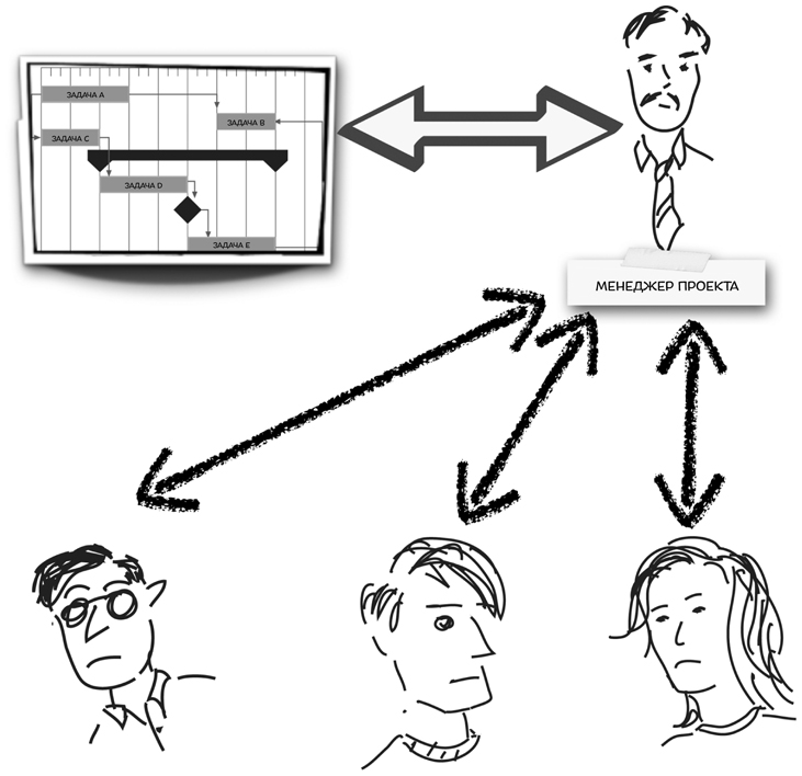 Открытость угрожает «мультяшным» менеджерам, похожим на героя комикса с остатками волос на голове, торчащими вверх, и скрытным менеджерам. Но даже хорошим командам нелегко ее принимать. Взгляните на открытость с позиции разработчика, который рассматривается в качестве эксперта по некоторой части кода, или менеджера проекта – «хранителя» плана, или владельца продукта – единственного представителя команды, контактирующего с пользователями и решающего, какие функции войдут в ПО. Каждый из этих людей имеет полное право рассматривать это как свой вклад в проект. Бывает очень трудно открывать эти вещи команде и поощрять других ее членов делиться знаниями, имеющимися только у них, и вносить изменения без предварительного получения разрешения.