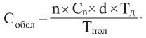 Сn – число рабочих, обслуживающих одну установку в течение смены; d – количество смен в сутки;